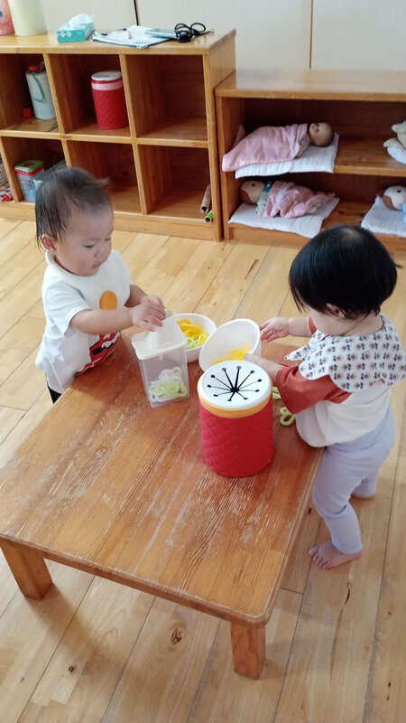 家庭的な雰囲気を大切に、一人一人の発達に応じた基本的な生活習慣をゆっくりと身につけていきます。