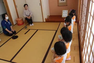和室でお茶とお菓子を頂きながら、礼儀作法を学び静かな時間を過ごします